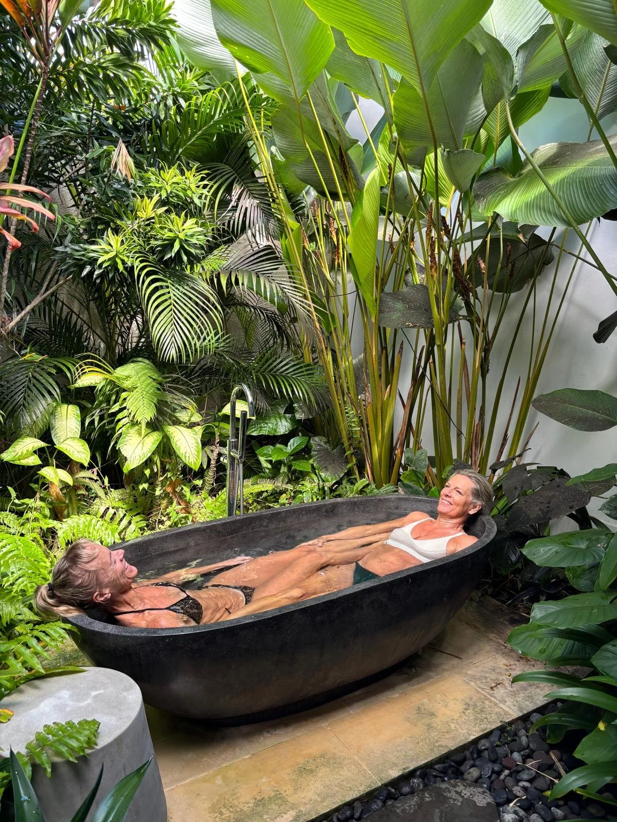 Bathe under the stars in your own private stone bath tub. Big enough to share, this bath is surrounded by your own lush tropical garden. A decadent treat, especially when filled with bubbles